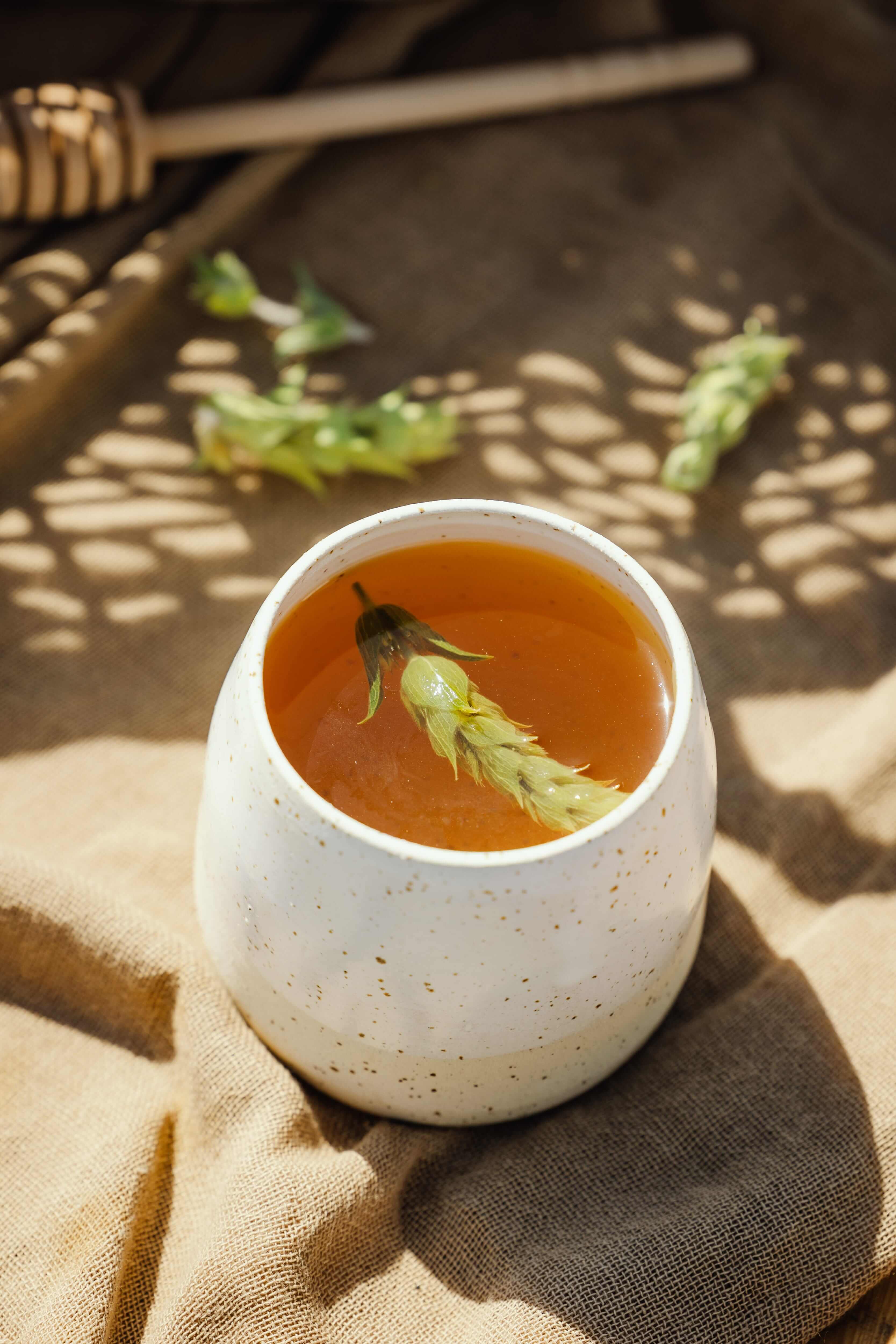 Enjoy Hot or Iced: Shop our signature herbal tea blend with sage, dandelion, and rosemary, single-origin wild Greek oregano, and raw, unfiltered Ikaria honey.